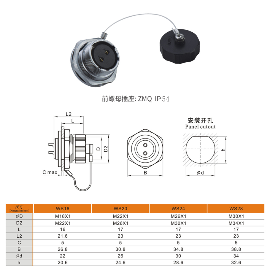前螺母式插座ZMQ系列