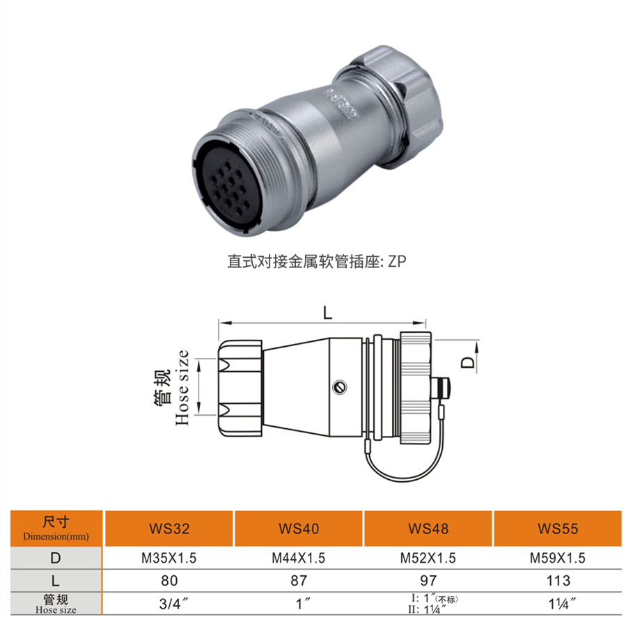 直式对接金属软管插座ZP系列