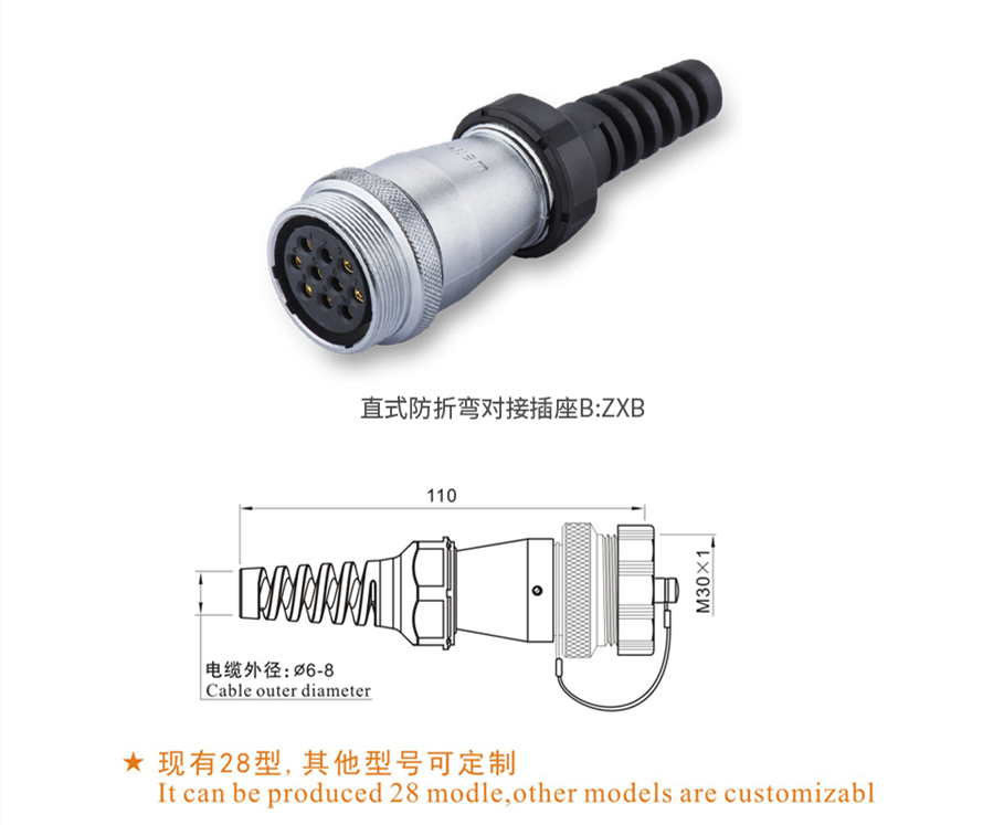 直式防电缆折弯对接座ZXB系列